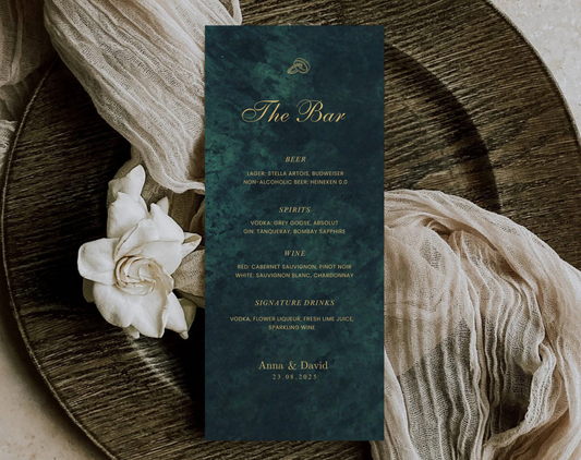 Gold & Dark Green Wedding Bar Menu Template | Editable Drink Menu | Elegant Wedding Bar Sign | Instant Download | Luxury Wedding Decor