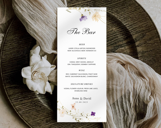 Wildflower Wedding Bar Menu Template | Editable Drink Sign | Custom Wedding Drink Menu | Instant Download | Boho & Rustic Wedding Decor