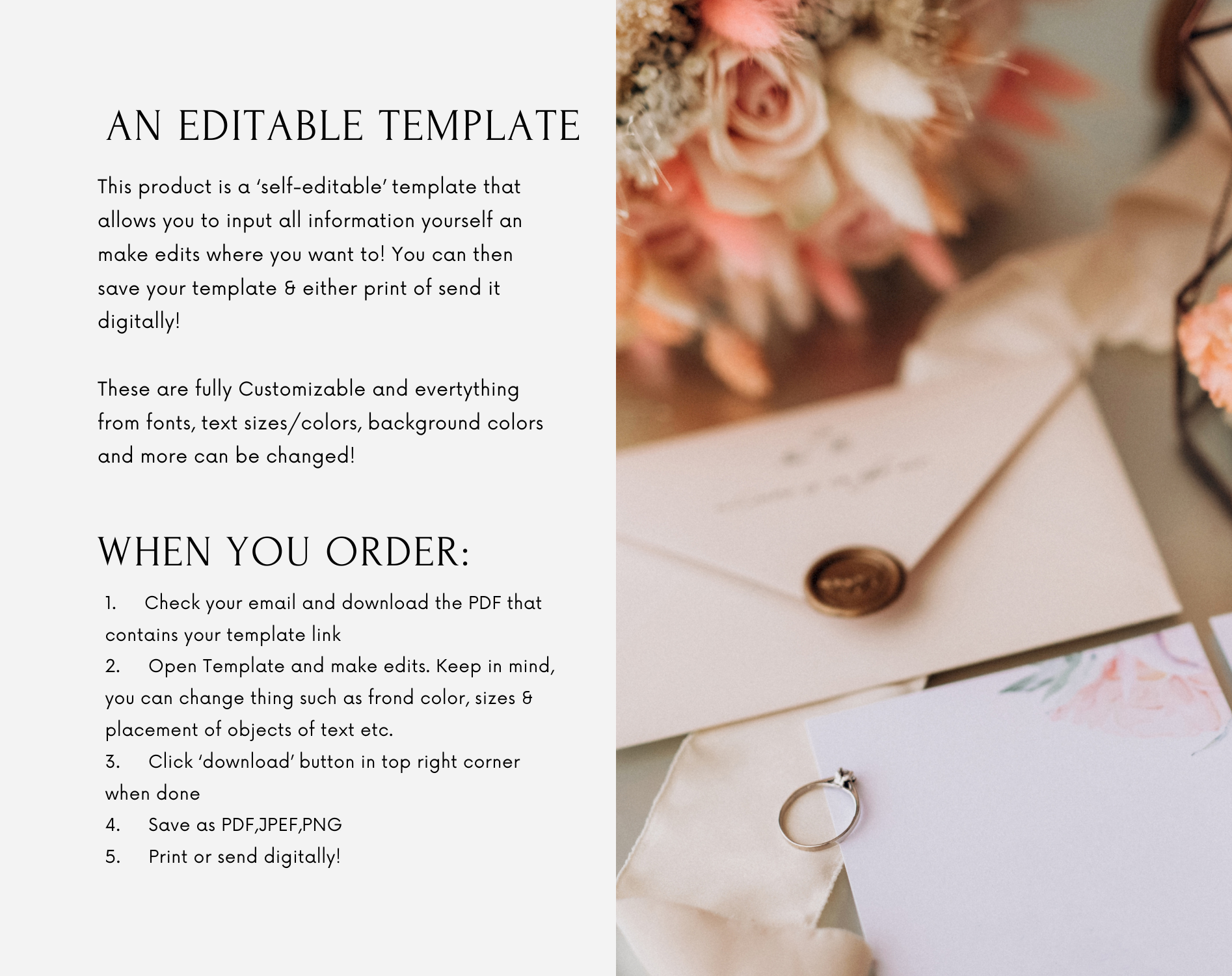 ✔PLEASE NOTE: This is a digital product. No physical item will be shipped. After purchase, you'll receive instant access to your editable template via Canva — no software download or designer wait time required!
